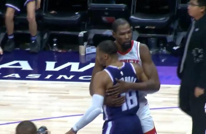 时光你慢点走!杜兰特赛后因输球而沮丧,依然和威少拥抱致意
