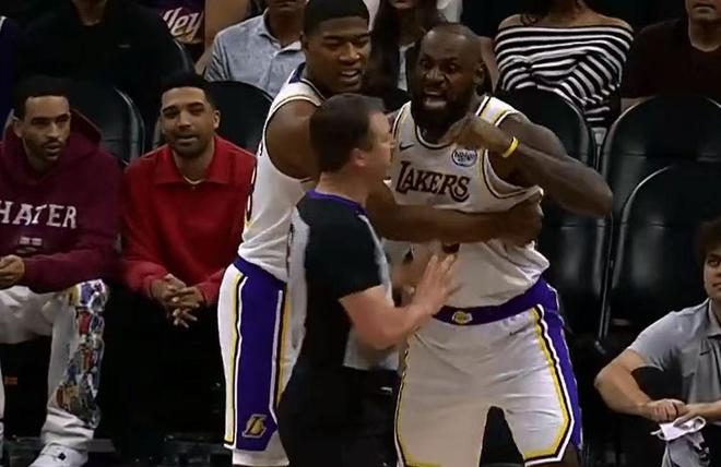 安保出动!詹姆斯和狄龙吵架,前者抓着裁判左手喋喋不休吃到技犯